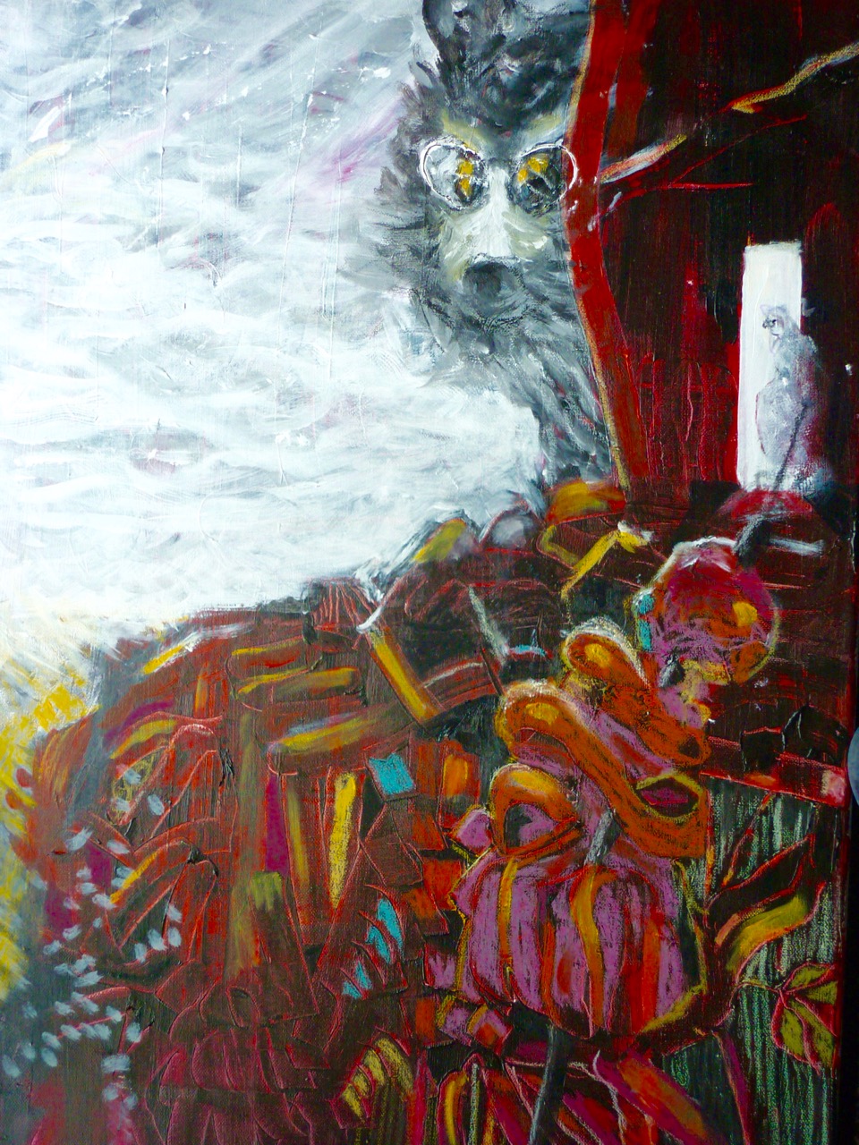 Here are three works in progress, Little Red Ridinghood, and Blue Beard, Das Rottkaeppchen and Blaubart respectively.