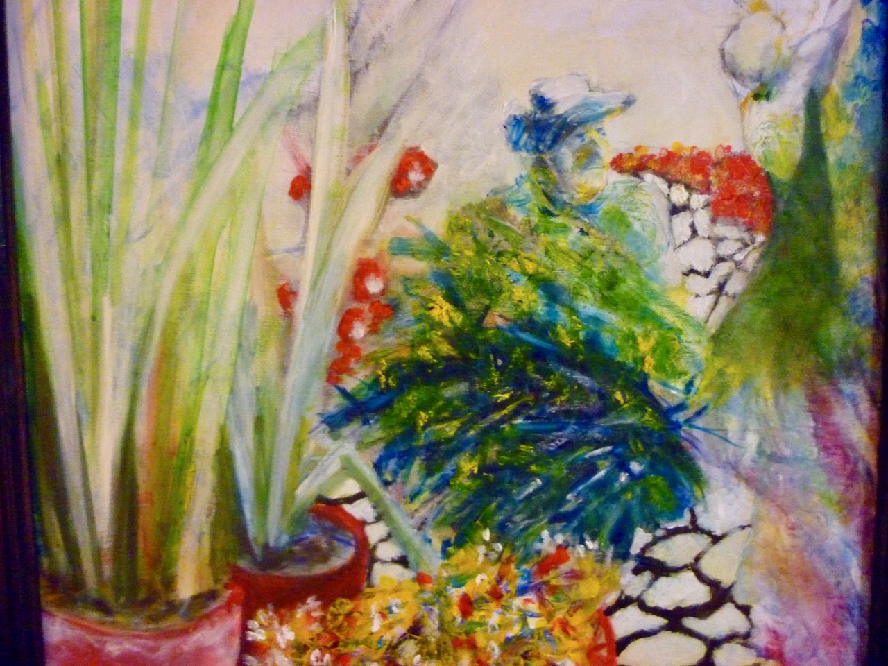 The other two, Still Life 2016, and The Gardeners, are mixed media on canvas, and measure 60X50 cms.These works are a sort of antidote